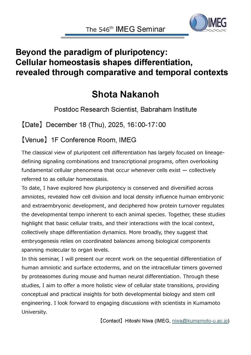 [発生研セミナー] 12/18 16:00- Dr. Shota Nakanoh