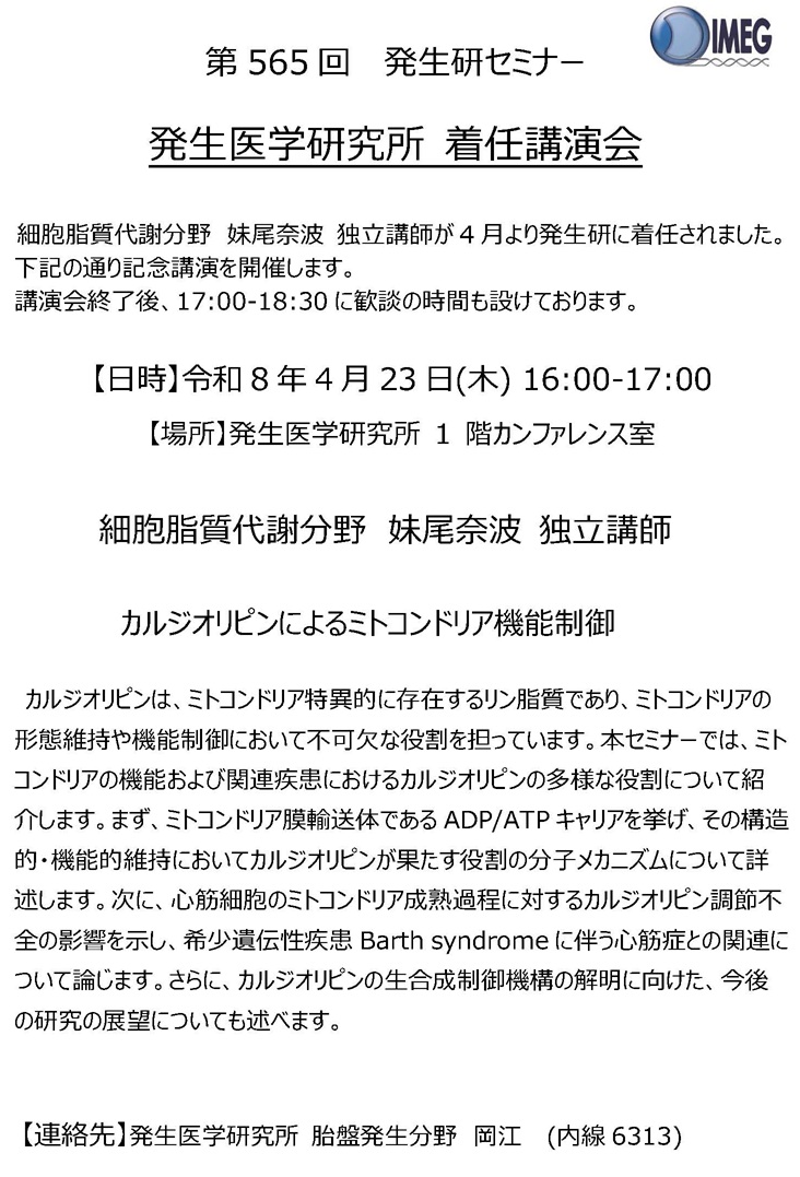 [着任講演会] 4/23 16:00- 妹尾奈波 先生
